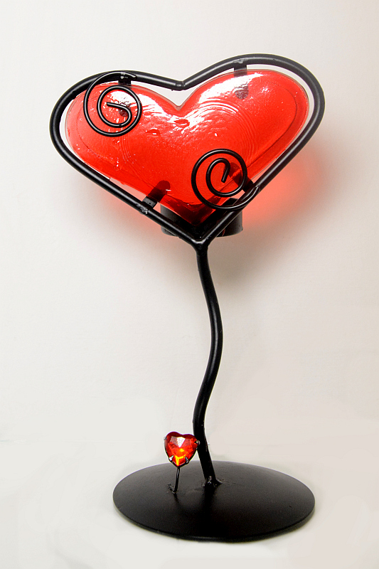 Suport pentru lumanare din fier forjat si sticla Dalila