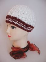 Caciula tricotata din fir gros de PNA alb-crem cu bordura bordo